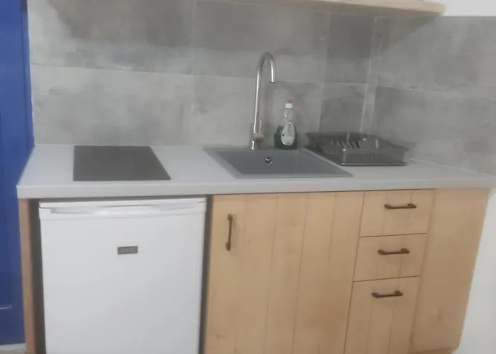 El Ioannas rooms A4 ofrece una cocina bien equipada con todos los utensilios necesarios.